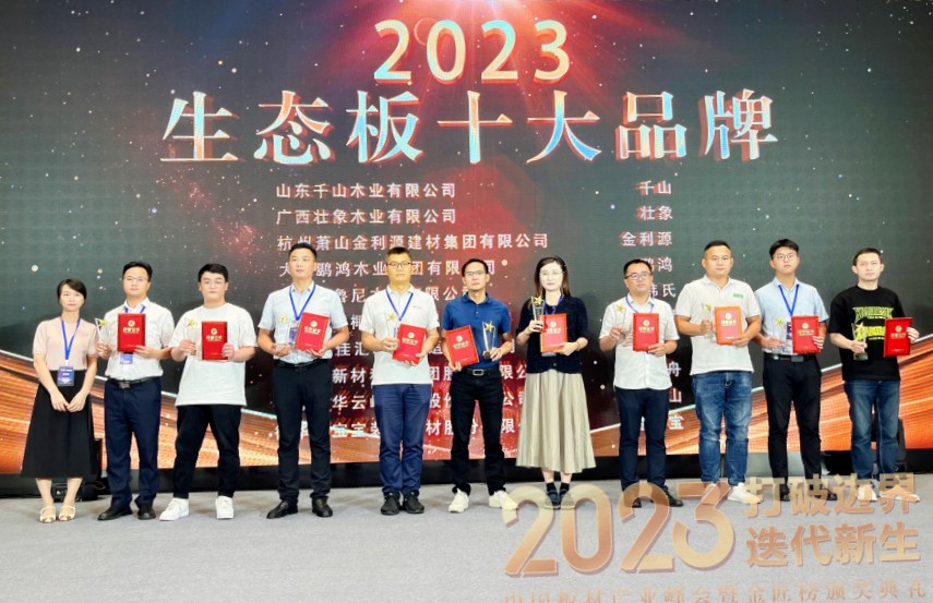 2023年7月1日,由中國木業(yè)網(wǎng)舉辦的2023中國板材產(chǎn)業(yè)峰會暨金匠榜頒獎典禮在杭州隆重舉行,行業(yè)專家、優(yōu)秀獲獎企業(yè)齊聚盛宴,共同見證了生態(tài)板十大品牌、行業(yè)影響力十大品牌等各品類十大品牌的榮耀加冕。