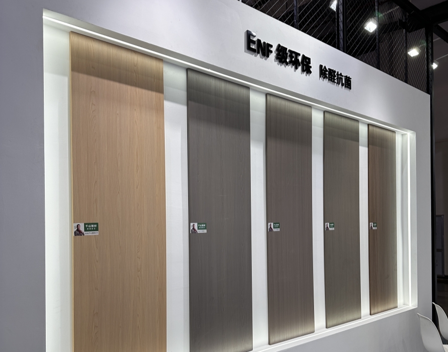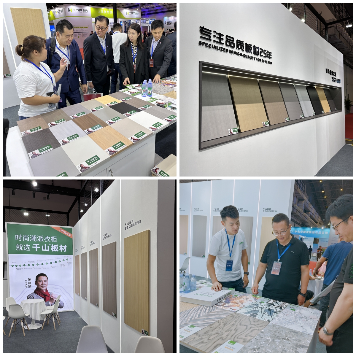 為更好的服務個性化定制和高端用戶的需求,滿足多樣化的家裝場景,千山在此次展會現場新推出了19款高定系列板材,表面花色采用數碼打印,環保等級為ENF級,吸引了諸多觀展客戶前來洽談咨詢。