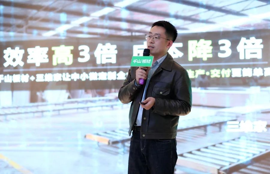 三維家山東大區(qū)經(jīng)理李清帥詳細介紹了三維家前后端一體化的貫通。李經(jīng)理分享到,三維家一體化實現(xiàn)銷售前端與生產(chǎn)后端的數(shù)字化、高效化生產(chǎn),三維家與千山板材的深度合作,必將助力終端,實現(xiàn)共贏。