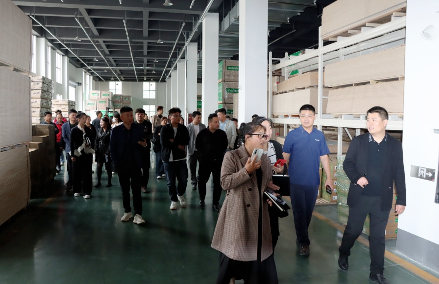 學習會結束后,王殿忠經理帶領大家參觀了千山的現代化生產工廠,從板材品類、生產工序、檢驗出廠等方面深入了解板材生產環節。