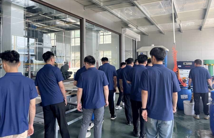 從2023年10月份開工籌建,到2024年5月份正式投產(chǎn),目前所有工作已進(jìn)入正軌。從生產(chǎn)原料、質(zhì)量控制、生產(chǎn)流程、設(shè)備管理等各個環(huán)節(jié)都執(zhí)行統(tǒng)一標(biāo)準(zhǔn),廠房內(nèi)整齊布局的現(xiàn)代化生產(chǎn)設(shè)備和工人專業(yè)熟練的操作給大家留下了深刻的印象。