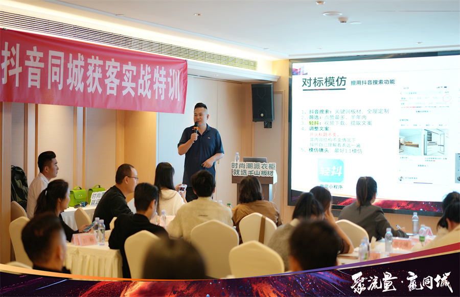 2024年千山著重發(fā)力線上渠道,通過抖音同城獲客引導(dǎo)經(jīng)銷商伙伴們突破自我,入局賽道,通過持續(xù)的線上轉(zhuǎn)化促進(jìn)業(yè)績增長。千山集團品牌運營中心于昆總監(jiān)為大家解讀了“板材生意”增長的“新渠道、新營銷、新增量”,通過多樣化的營銷策略,打造線上社媒傳播陣地,最終賦能終端。