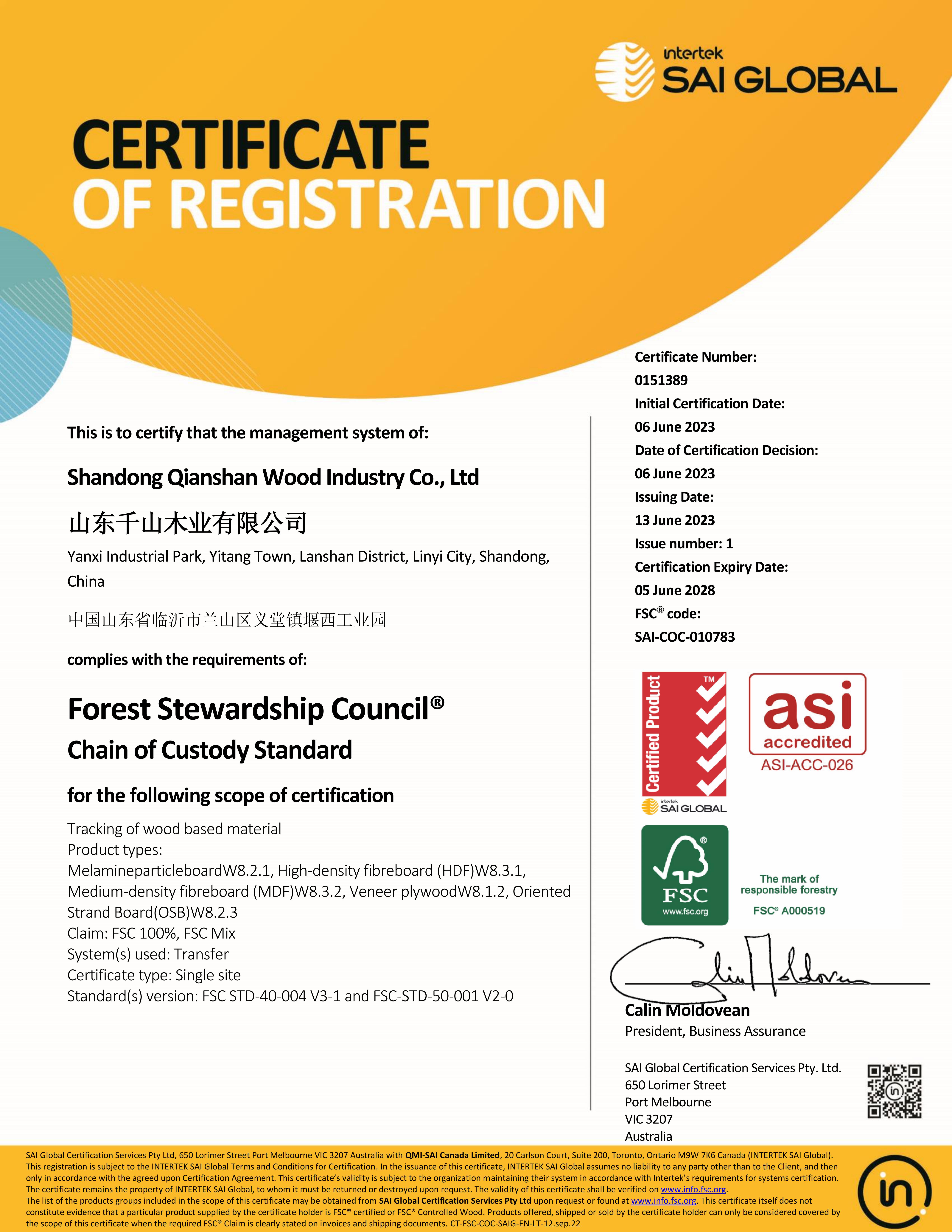 回顧千山的環保進階之路,始終順應國際環保發展的要求,積極推進產品的綠色認證,構建覆蓋全產業鏈的環保產品體系,贏得市場的認可與信賴。2019年,千山無醛級大豆膠板材成功上市,引領板材行業進入植物豆膠新時代;通過了國內最高級別的環保產品認證——中國環境標志產品認證(十環認證),并獲得中國綠色產品認證證書、環境管理體系認證證書、質量管理體系認證證書;2023年千山再次順利通過“全球最嚴苛的”森林認證——FSC森林認證。