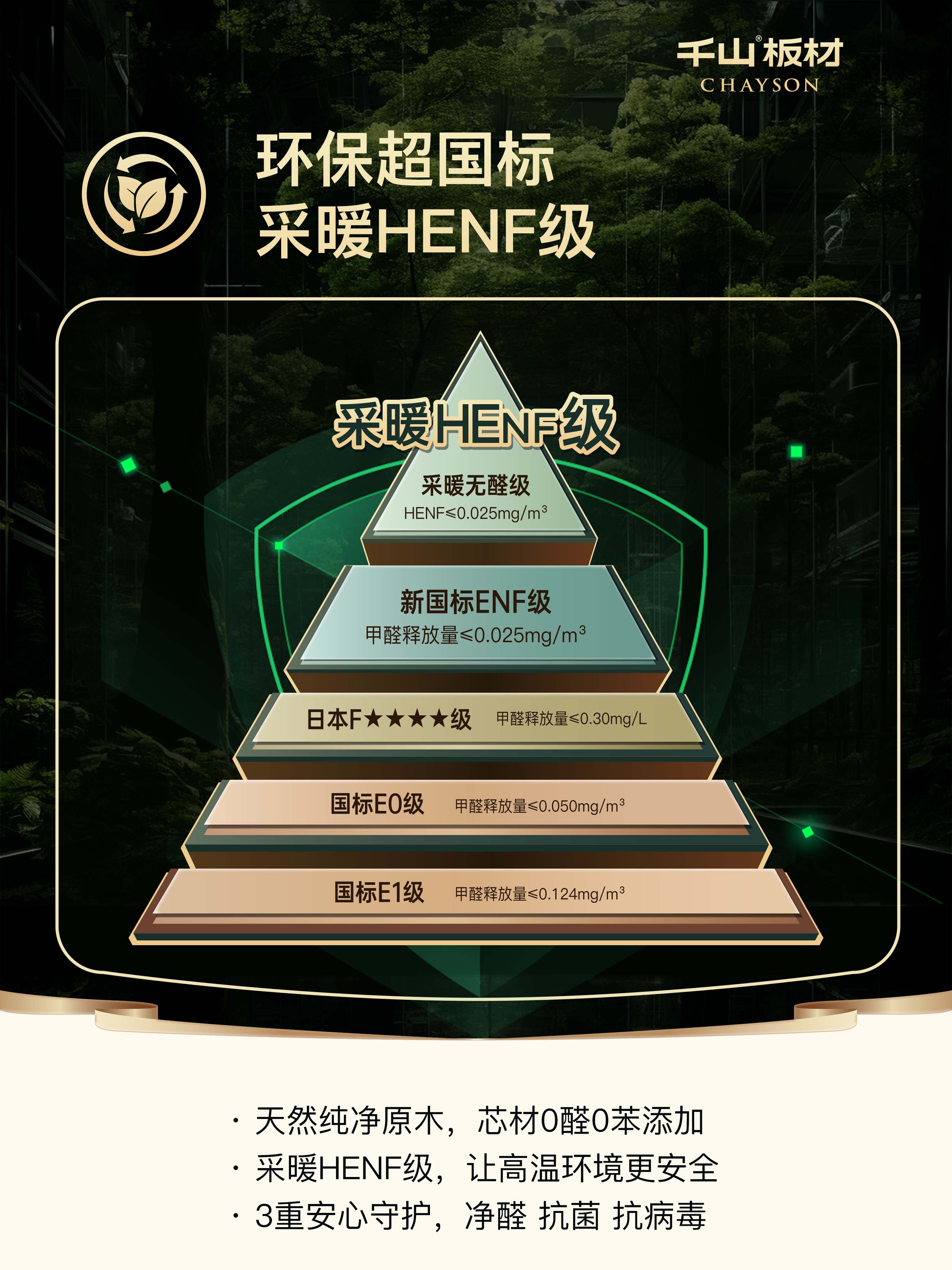 千山原木板質(zhì)地天然,綠色0醛0苯添加,環(huán)保達(dá)采暖HENF級(jí),融入凈醛、抗菌、抗病毒功能工藝,讓家不止于美觀,更是一方安心健康的守護(hù)。